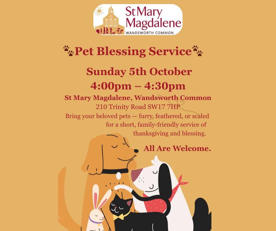 Bring your furry, feathered, or scaly friends along to our Pet Service at St Mary Magdalene!